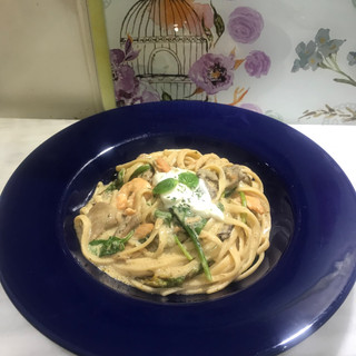 Creamy Prawn, Salmon and Wild Mushroom Pasta