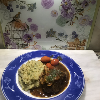 The jerk gravy complemented the tender beef. I love mushrooms with beef. In addition, the buttery, herby mash also makes a great contribution. The sweet cherry tomatoes just brighten the dish and make it look vibrant.